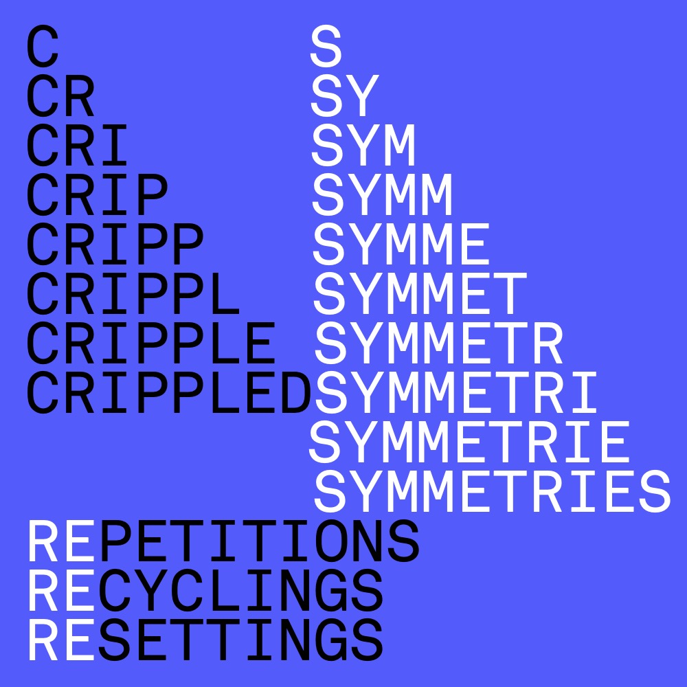 Crippled Symmetries is a project by Ensemble KNM Berlin in cooperation with Busan International Contemporary Music Festival, Department of Musicology of the Free University of Berlin, Frequenz_Festival Kiel, Goethe-Institut Lima, Greek National Opera Alternative Stage, Kultur Büro Elisabeth, MaerzMusik / Berliner Festspiele and Studio Acht Taipei.